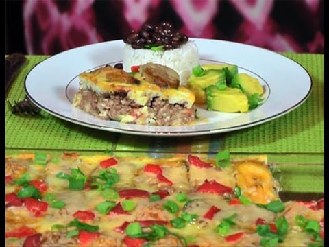 Pastelon, is made with layers of ripe plantain, seasoned ground beef & cheese. It's normally eaten with white rice & red beans. This is my family recipe. Vie...